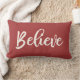 Acreditem na escrita manual | Travesseiro decorativo de férias em vermelho e creme. Design de tipografia moderna de uma fazenda feita por Blackberry Boulevard "Acredite" escrita em um creme de letra colorido em um fundo vermelho sólido. Coordena-se com a coleção costeira de Natal. Outras cores disponíveis no armazenamento. Travesseiro de sotaque perfeito para sua decoração de casa de férias.