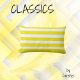 Travesseiro decorativo amarelo e branco com listras clássicas. Também disponível em preto/branco esmaecido, azul/branco, marinho/branco, vermelho/branco e cinza/branco. Excelente para atualizar a área do pátio.