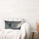Um belo corvo iluminado por uma lua de cheio num travesseiro bonito que se ajustado tão bem numa sala de temas celestiais.