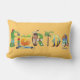 As pinturas de aquarela originais de Anne Ormsby, das imagens da Flórida, formam as letras que figuram neste travesseiro. Na bolsa estão uma dispersão de cabanas pintadas por Anne.