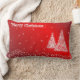 Travesseiro lombar do estilo mostrado no vermelho com um impressão festivo da árvore de Natal. Personalize este artigo ou compre-o como é.