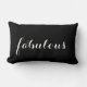 Travesseiro com texto fabuloso. O impressão está em ambos os lados com cores opostas.