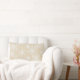 Este travesseiro decorativo é mostrado com um fundo natural da cor com um impressão festivo dos flocos de neve do tempo do Natal.