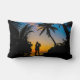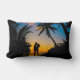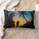 Melhore seu espaço com este travesseiro lombar romântico apresentando uma silhueta de um casal abraçando-se sob palmeiras ao pôr do sol. A design captura a beleza de uma noite tropical com o céu quente de ouro e as visões do oceano, fazer-a como um sotaque perfeito para o costeiro, praia ou decoração domiciliar inspirada no amor