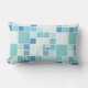 Um travesseiro com um design geométrico em azul, lacre, turquesa e verde. Bonita para um interior moderno ou uma casa de praia.