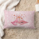 Beijar lábios com corações fluindo sobre um fundo cor-de-rosa gradiente, bordas de rendas florais, o dorso não tem as bordas de rendas.. muito único - Este design é sutil e colorido- lúdico, mas sofisticado - cada lado do travesseiro é ligeiramente diferente para lhe dar uma variedade num grande travesseiro
