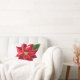Este travesseiro é mostrado com um impressão vermelho bonito da arte da poinsétia do feriado do Natal.