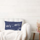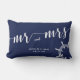 O Sr. e a Sra. marinho náutica, travesseiros de casamento lombar azul e branco com roda branca e texto personalizável - você pode adicionar o nome da noiva e do noivo e a data do casamento