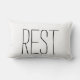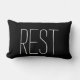 Uma Palavra: Descanse Travesseiros decorativos. Travesseiros pretos e brancos com a palavra simples "descansar" em ambos os lados. Preto com letras brancas num lado; branco com letras pretas no outro lado. Veja mais na nossa loja, Cote a Vida. Link abaixo: