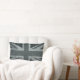 A bandeira rústica de Union Jack Ingleses e de Reino Unido nas máscaras do cinza em uma textura legal de serapilheira olha o fundo. O travesseiro é realmente um algodão agradável e uma serapilheira nao itchy.