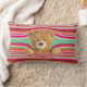Urso-peludo castanho-branco em listras verdes e cor-de-rosa.