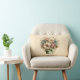 Pillow with a cute image. Blue. pink and cream colored flowers with green leaves. Set inside a green flower pot with a green plaid cloth hanging over the side.