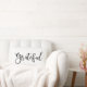 Um simples travesseiro decorativo moderno com a palavra grato. Uma boa adição à sua decoração de ação de graças... vem em várias cores. Projetado para você pelo Blackberry Boulevard.