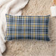 Travesseiro decorativo quadrado com padrão original de xadrez esportiva Plaidwerx em azul marinho, ouro amarelo e branco. Cores do logotipo de uma equipe desportiva profissional. Almofada retangular de suporte lombar também disponível.