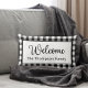 Personalize este Travesseiro de Boas-vindas da Moderna Farmhouse Black and White Buffalo, adicionando seu nome de família ou texto especial.