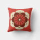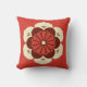 Travesseiro decorativo de design de mandala japonês que retrata uma flor estilizada de lótus, simbolizando pureza, despertar espiritual e fidelidade - flor em laranja de mandarina, creme, castanho de chocolate e ouro sobre fundo laranja de mandarina