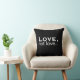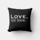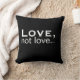 Black throw pillow with "Love, not love... " in white typography. a reminder to choose divine Love, rather than egoic love.