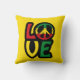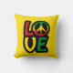 Love reggae music design com símbolo de paz e tipografia reggag cores, travesseiro