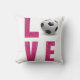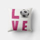 Love Soccer word design com letras faíscas cor-de-rosa quente e o "o" é substituído por uma bola de futebol.
