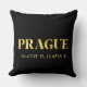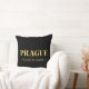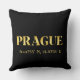 O travesseiro decorativo Lux apresenta as coordenadas de Praga, República Tcheca e latitude e longitude do mapa em fontes douradas sobre fundo preto.
