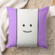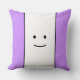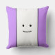 Este design de diversão apresenta um desenho facial simples, doce e sorridente, centrado em dentro de uma larga faixa vertical branca, unida por faixas roxas leves.