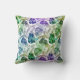 travesseiro decorador bonito com folhas roxas, lacas e tropicais verdes em branco.