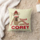 Um macaco-meia bonito com nome personalizado que você pode personalizar com o nome do seu filho substituindo o texto de exemplo no modelo de design. Se desejar alterar a fonte ou mover o texto, selecione o botão "personalizá-la". O reverso do travesseiro é uma cor vermelha sólida coordenadora. Cortesia gráfica do macaco-meia de vecteezy.com/sunshine91.