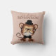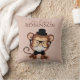Esta almofada de berçário para menino ou menina é um ótimo presente para um novo bebê, apresentando tons neutros, um macaco com chapéu, óculos e gravata borboleta em aquarela. Todos os estilos de fonte e cor de fundo podem ser alterados clicando no link personalizar ainda mais após personalizar.