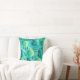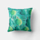 Um travesseiro colorido com um padrão de blocos de maçãs e peras com folhas verdes que seria perfeito para qualquer quarto em sua casa. Arte e design por Julie Nicholls©