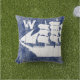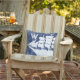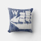 Decore seu pátio ou a plataforma com este travesseiro exterior ou interno temático náutico caracteriza um navio branco e uma inicial monogrammed em uma textura resistida azul da madeira da praia. Projetado pelo ©Tim mundialmente famoso Coffey do artista.
