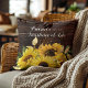 Travesseiro de decorador com um design de madeira marrom-escuro rústico, decorado com girassóis amarelos brilhantes e uma letra branca, "Amigos são o sol da vida."
