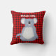 Frente de travesseiro apresenta uma Mãe Koala com seu Joey em um fundo de xadrez de búfalos e as palavras "Me espreme como um Koala". Outros elementos que correspondem ao fundo da xadrez e a um Koala dormindo com as palavras "Hora de Koala". Todas as palavras podem ser alteradas.