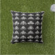 Travesseiro exterior em uma grade 3 x 4 de traços bonitos e detalhados em preto e branco, com sombras de cinza sobre fundo preto
