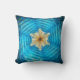 Uma estrela fractal de tom azul e amarelo de David em um fundo escuro. Adicione seu próprio texto no verso.