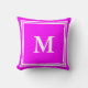 Pode personalizar este travesseiro decorativo magenta introduzindo o seu monograma (inicial). O texto é branco.
