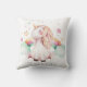 Ilustração de aquarela adorável apresenta unicórnio sentado com arco-íris, nuvens e estrelas. A citação diz "A Magia é Real". Travesseiro bonito para quarto de creche ou de crianças.