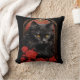 Black Maine Coon cat com flores vermelhas estilo art nouveau