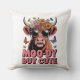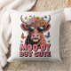 Uma adorável vaca das Terras Altas com flores e borboletas. Tipografia de Malhumorado Mas Fofo. Cor de fundo pode ser adicionada.