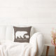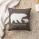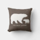 Mama e bebê urso almofada de lançamento para decoração do berçário. No verso da almofada tem um padrão de bolinhas brancas em uma almofada marrom.