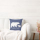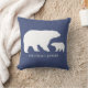 Mamãe e ursinho almofada para decoração de berçário. No verso da almofada tem um padrão de bolinhas brancas em uma almofada azul.