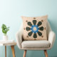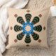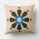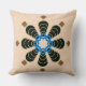 Travesseiro em um padrão mandala inspirado no Extremo Oriente em castanho-escuro de chocolate, acentuado com tanas e azul-cerulano profundo, sobre fundo bege-claro