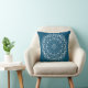 O travesseiro decorativo temático da coruja adorável apresenta uma mandala branca estilizada original com corações e corujas sobre um fundo azul empoeirado. As corujas caprichosas fazem esta excelente para qualquer amante de corujas. Um presente super bonito. Faz excelente sotaque a qualquer decoração.