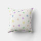 Este travesseiro decorativo apresenta pequenos corações desenhados à mão em tons pastéis de rosa, amarelo, lilás, azul, pêssego e menta, perfeito para um berçário neutro em termos de gênero.