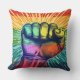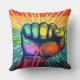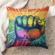 punho enrolado com fundo arco-íris