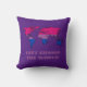 Travesseiro decorativo personalizável com o mapa do mundo na cor da bandeira do orgulho da bissexualidade, um design em um fundo cor-de-rosa; o texto 'Vamos Mudar o Mundo' é um texto modelo e pode ser alterado.