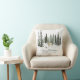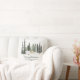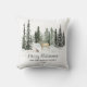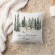Este travesseiro decorativo de feriado apresenta a floresta de inverno com a família de veados e neve e personalizado com seu texto personalizado. A parte traseira apresenta a camada de neve sobre fundo verde escuro.