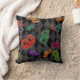 Este travesseiro decorativo Mardi Gras apresenta máscaras mascarada brilhantes em verde, rosa, roxo vermelho, turquesa e laranja sobre um fundo de diamante de harlequina preto e cinza. Concebido pelo artista mundialmente famoso ©Tim Coffey.