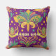 Que os bons tempos se desenrolem com este espantoso decor verde, roxo e dourado Mardi Gras com o padrão folclore! Um travesseiro Mardi Gras com as cores festivas das comemorações da Fat Terça-feira. O design apresenta um conjunto único e atraente de máscaras e pulgas-de-lis num pano de fundo roxo. A parte de trás do travesseiro tem um padrão semelhante. Você pode fazer alterações no texto "Mardi Gras" com o botão personalizar. Você também pode acabar com o texto. .