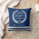 Um travesseiro temático personalizado do marinho do hóquei que caracteriza um ponto para um nome e iniciais.