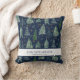 "Marinho Azul Floresta de Floresta Neves Nascendo Bebê Travesseiro decorativo." Árvores florestais modernas e nevando para o quarto de berçário do seu bebê. Seu nome e status de nascimento (ou mensagem) são facilmente personalizados. O fundo azul do marinho pode ser alterado. Criada por Audrey Jeanne Roberts, artista e designer licenciada internacionalmente reconhecida, copyright.